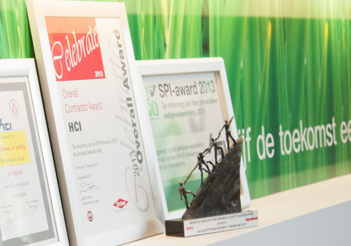 HCI heeft gisteren voor de 7e keer op rij de A-Excellent award mogen ontvangen voor haar safety performance tijdens de stilstand van Exxonmobil Rotterdam in 2014. Een unieke prestatie waar we erg trots op zijn. HCI heeft tevens als enige firma 5 gouden sterren behaald.
